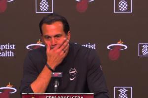 赛后,热火主教练斯波点评阿德巴约表现时说道:“这是一个超现实的夜晚,我们在这座球馆里见证过太多奇迹,今晚这就这么发生了,我们很幸运,能够见证这一刻。第一节的表现就是一头怪兽,半场40+,半场休息的时候我们还是在说就正常打我们的比赛,但球就是在不断的找到他。一旦他得到50分,我们就认为他能得60分,一旦他得到60分,我们就说得70分吧,我从那时候起就没想过,甚至不敢换下他,我想让他享受生涯之夜,让他享受球迷的欢呼,我不知道他的得分什么时候会停止,但他一直在得分,最终我在他得分超越科比后才把他换下来。”