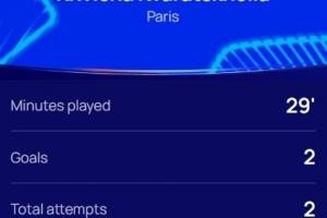 本场比赛巴黎前锋克瓦拉茨赫利亚替补登场29分钟梅开二度,并送出助攻,赛后当选欧冠官方评选出的本场最佳球员。